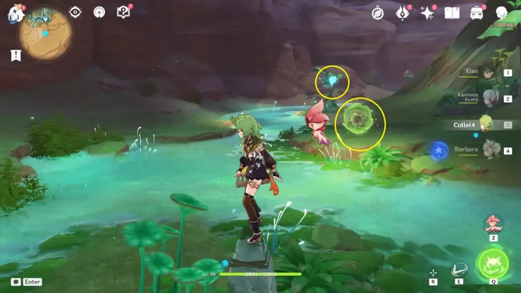 To acquire the Dendro particles, players may utilize the scattered four-leaf sigils located in the area. Additionally, players can also use other portals that transform them into Mayflies, facilitating the automatic collection of certain Dendro particles.