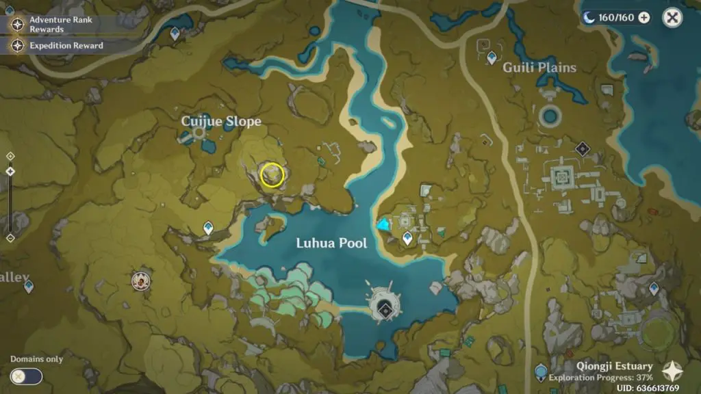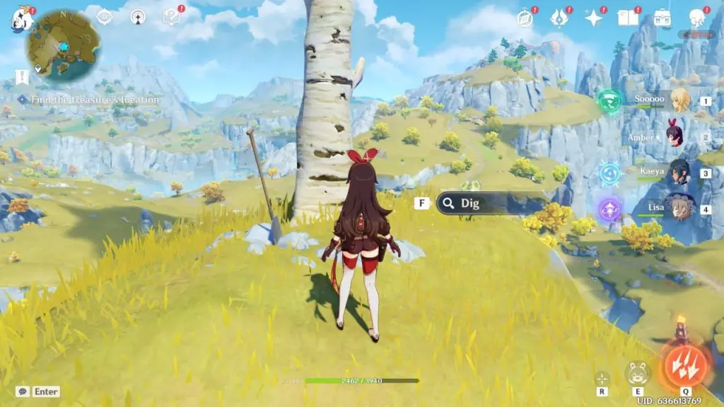 Your next destination is the highest peak of Cuijue Slope which is to the west or on the other side of Luhua Pool as marked on the map. Head there and begin your climb. At the top, there will be a shovel in the ground and it will prompt you to “Dig” for the quest chest to appear. Collect all rewards to complete the quest.