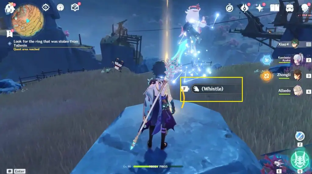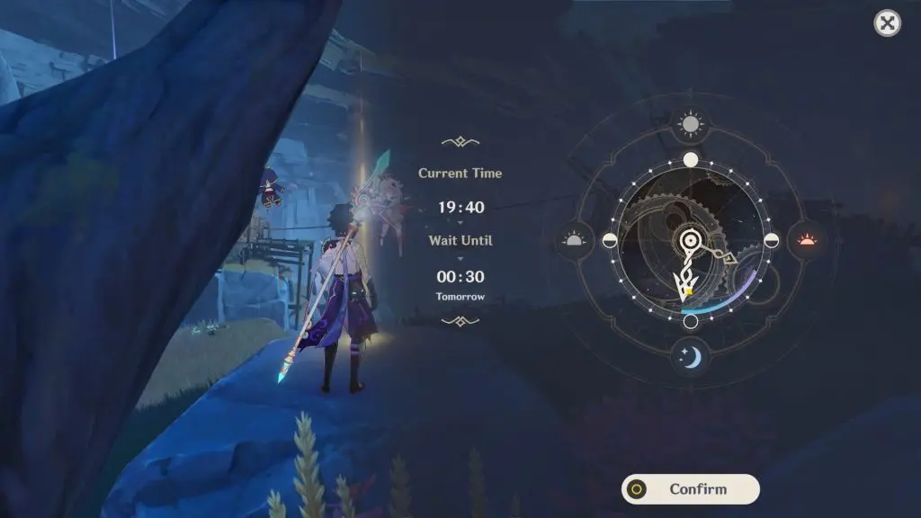 Next, change your in-game time of the clock until it’s about 00:30 and climb onto the rock behind with a glowing Investigate spot and interact with it to whistle.