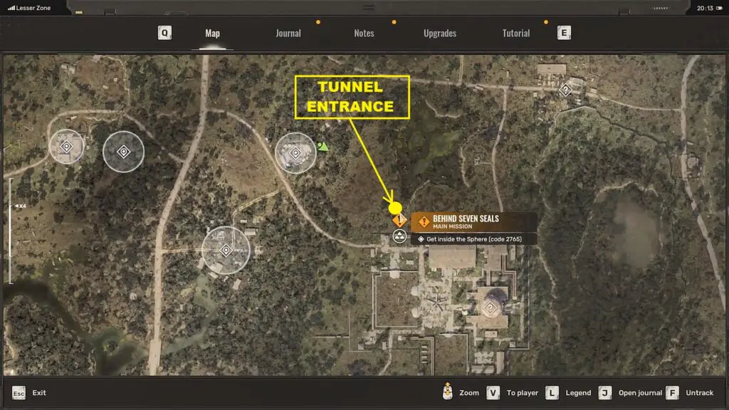 Go to the location shown in the picture below north of the sphere. There you will find an entrance to a tunnel as shown in the second picture below. Enter the tunnel, and there you will find a locked door. Use the code 2765 to unlock the door and enter the sphere (You can skip the previous part and directly come here and use the code to enter the Sphere). This completes the quest. Inside the tunnel, you will also find a stash. Click here to see how to get it.