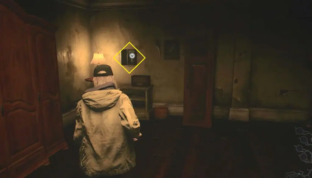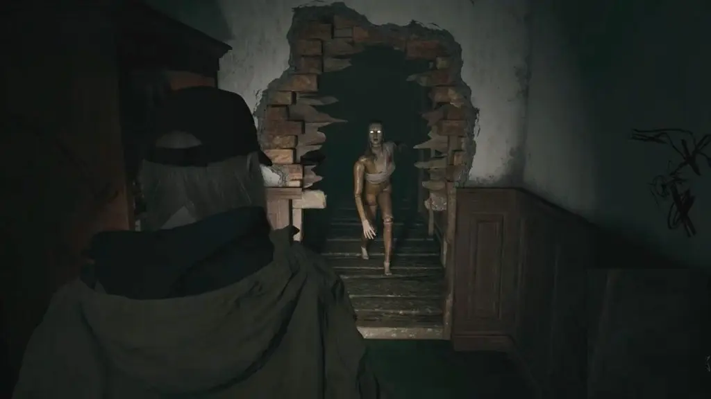 Enter the study room to discover the previously rusty door open now. Begin your journey to the bedroom. Keep your eyes fixed on the mannequin following you.