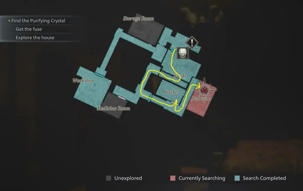 Sprint through the study and into the hall, then to the kitchen. Clear the core before racing into the bedroom and retrieving the fuse.