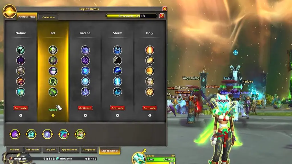 Once installed, it adds a new “Legion Remix” tab inside your Warband Collections menu. In this new tab, you can see all your Remix talents, and instead of using key combinations, you can just click on the talent you want to switch to.