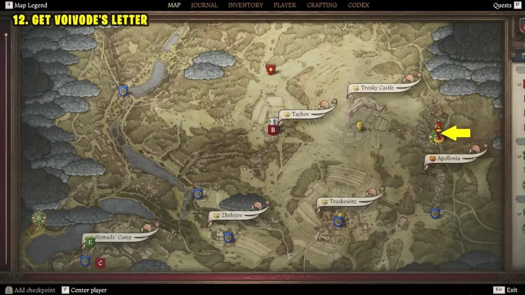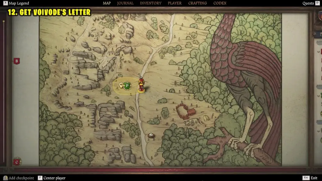Speak with Voivode, and he will ask you to bring a letter from Marika before giving you the amulet. Return to Marika and say, “He cares about you.” > “I swear.” Then, ask her about the letter. She will reveal that she hid it nearby inside a tree near a small river.