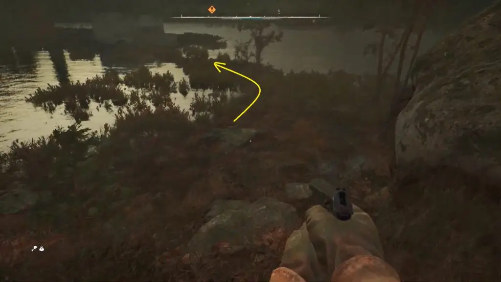 Now, walk along the strip of land in the east direction and follow the wooden planks on the ground, leading to the island.
