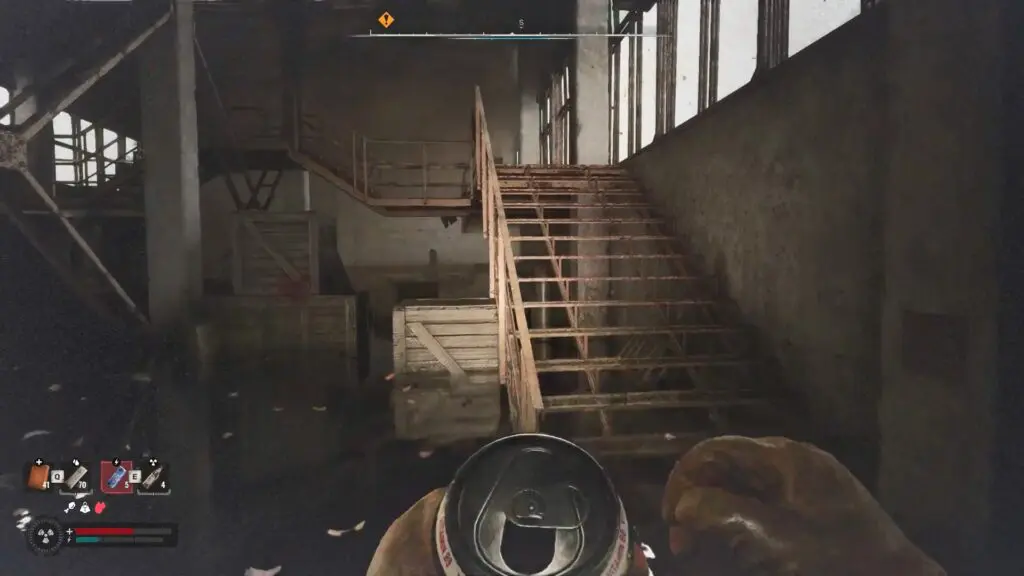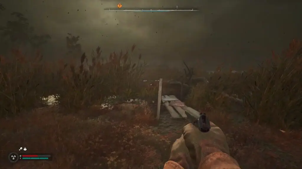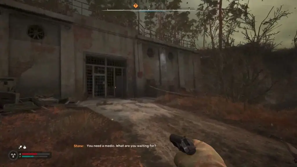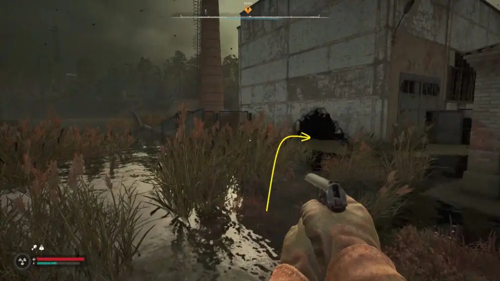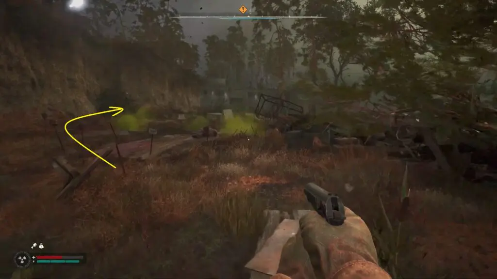 Once you reach the area with radioactive fumes, go around to the left to make your way to the entrance.