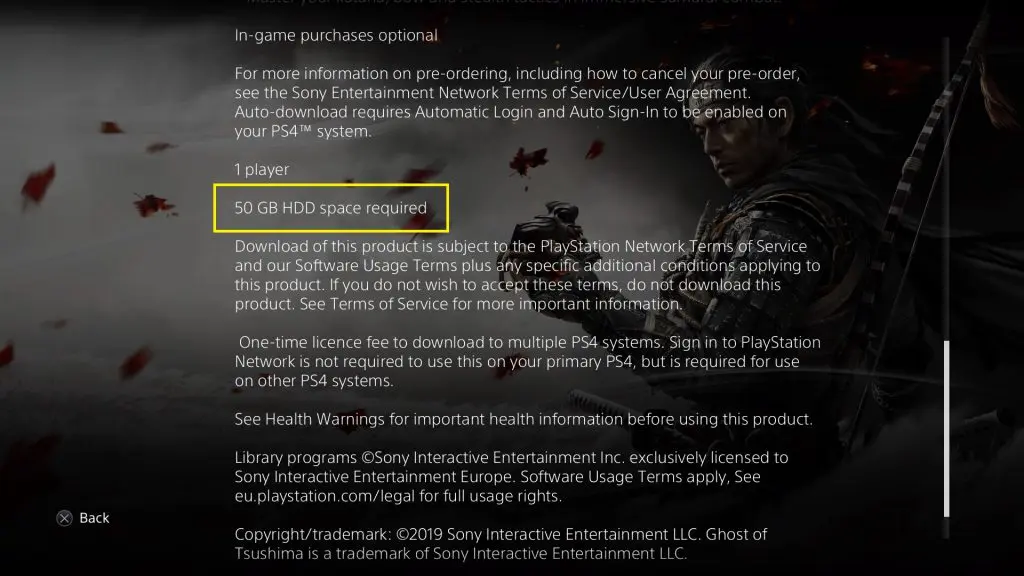 Ghost of Tsushima, the upcoming Samurai action-adventure game developed by Sucker Punch Productions and published by Sony Interactive Entertainment for PlayStation 4 has revealed the hard disc requirement for the much anticipated game. The game installation will require 50 GB free disc space. This information is available from the pre-sale page of the game. In contrast The Last of Us Part 2 will require 100 GB HDD and Final Fanatasy 7 Remake which released in April required 90 GB Disc Space. This creates a little doubt regarding the size of the map and campaign length.