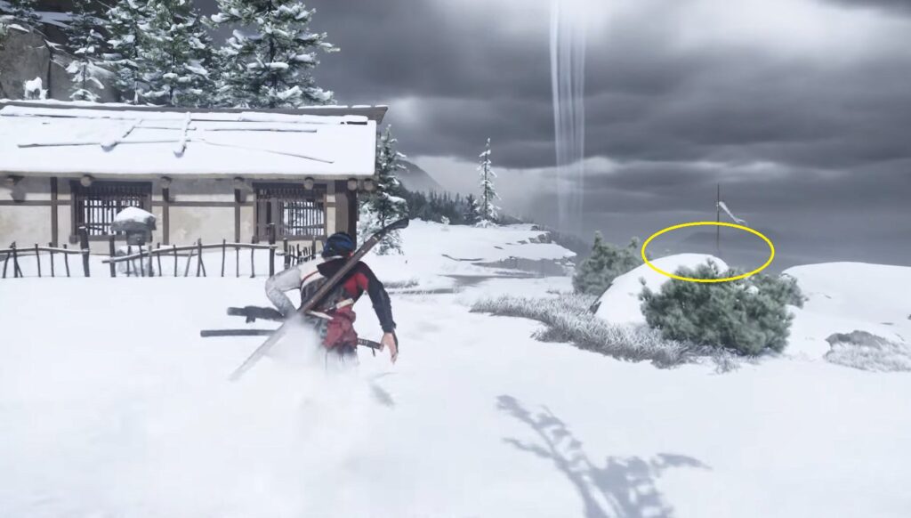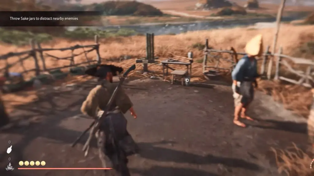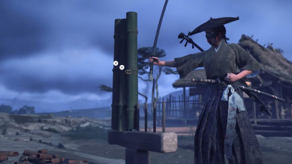 This Bamboo Strike is located at Huranui’s Rest Inn, just outside to the left of the building where a group of ronin are standing. To begin the challenge, you’ll need to drink some Sake first.