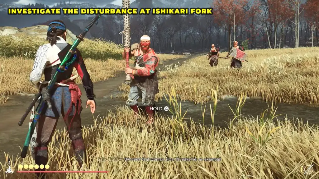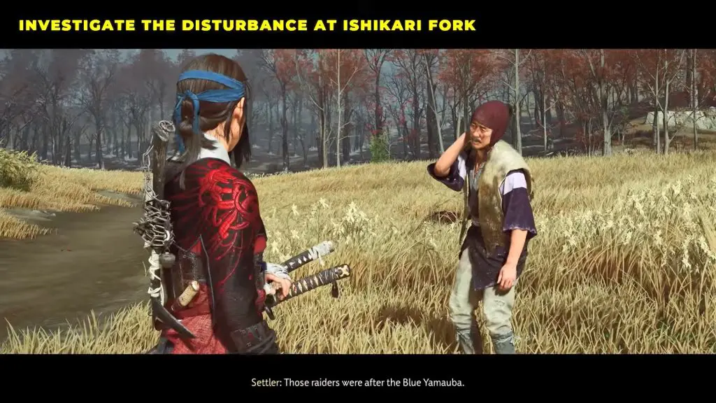 To begin your hunt, head to Ishikari Fork. When you arrive, you’ll see a settler being attacked by three enemies. Defeat all three enemies to save the settler.