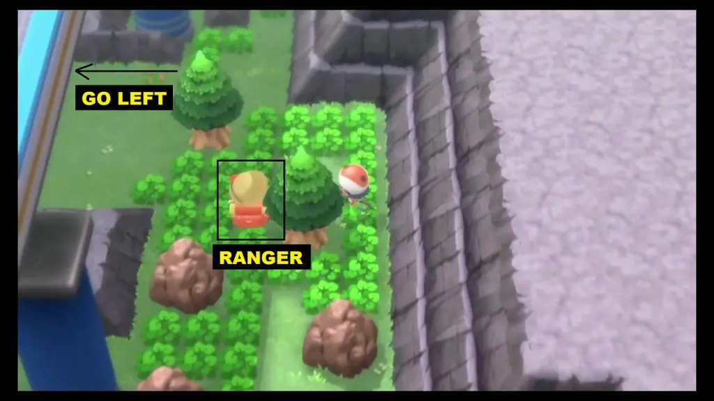 Keep moving ahead until you reach a Ranger as shown in the picture below. From here, turn left to go under the bridge.