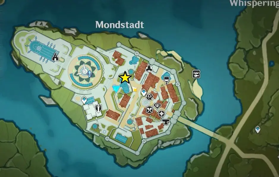The gift/chest can be found behind a hotel in Mondstadt City, the location is marked on the map.