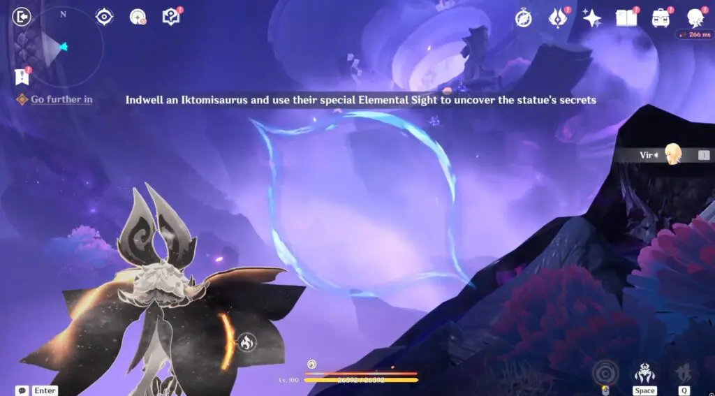 As you play through the story quest “Journey of Stars and Flames” in Genshin Impact, you’ll need to use a special ability by indwelling an Iktomisaurus to uncover hidden paths. First, find the nearby Iktomisaurus Spiritsconce and interact with it. This will give you the power to use its Elemental Sight, a special ability that helps you see things that are normally hidden.