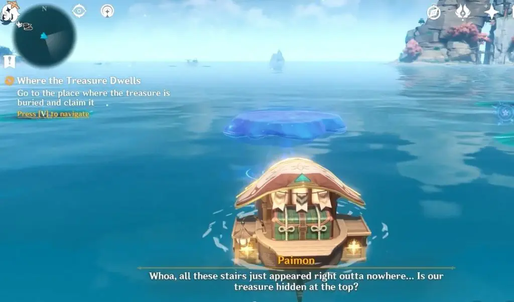 This guide shows how to complete the objective “Go to the place where the treasure is buried and claim it” of a world quest “Where the Treasure Dwells ” in the game Genshin Impact 2.8. This quest is part of the series “The Treasure of the Four Skerries”, which involve 5 different quests.
