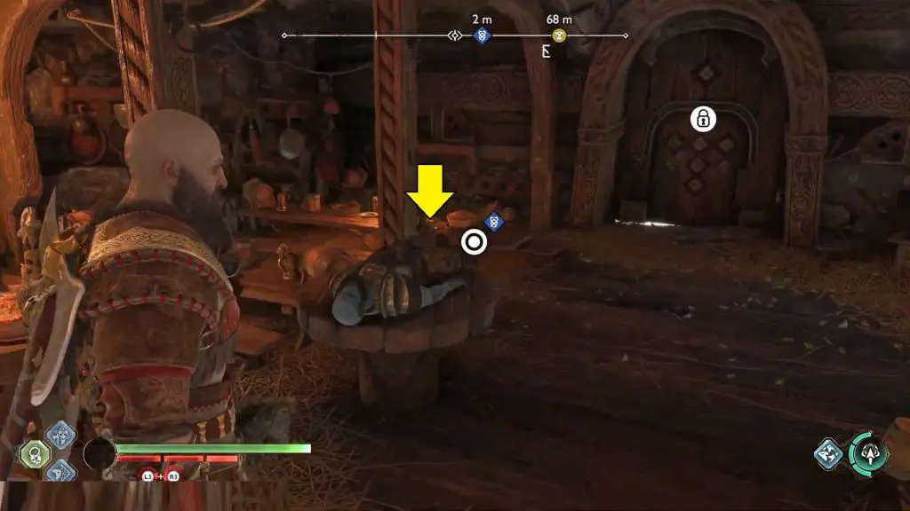 Next, proceed to Raeb’s Tavern in Nidavellir and interact with Brok’s corpse inside the Tavern.