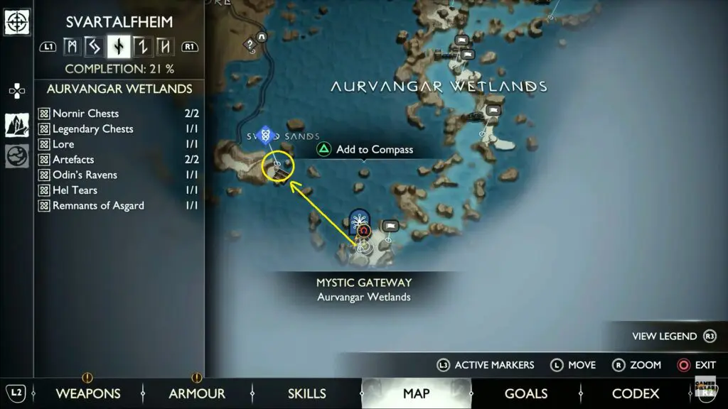 Players now need to proceed to Sverd Sands. Go South from the Mystic Gateway on the southern tip of the Aurvangar Wetlands. There use the pulley bridge to reach the Sverd Sands.