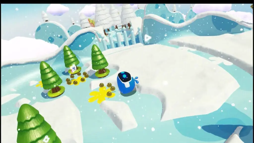 Continue further in the level until you reach a snowy area. Keep hitting the three pine trees in the left corner repeatedly to make the puzzle piece appear.