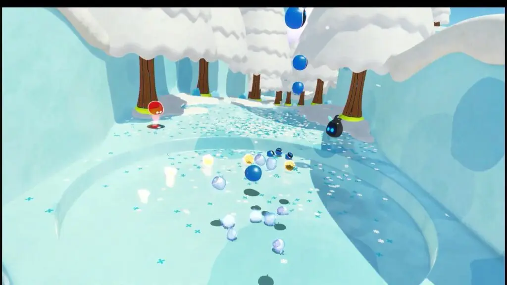 Move ahead into the snowy area. Keep hitting the three pine trees in the left corner repeatedly to make the puzzle piece appear.