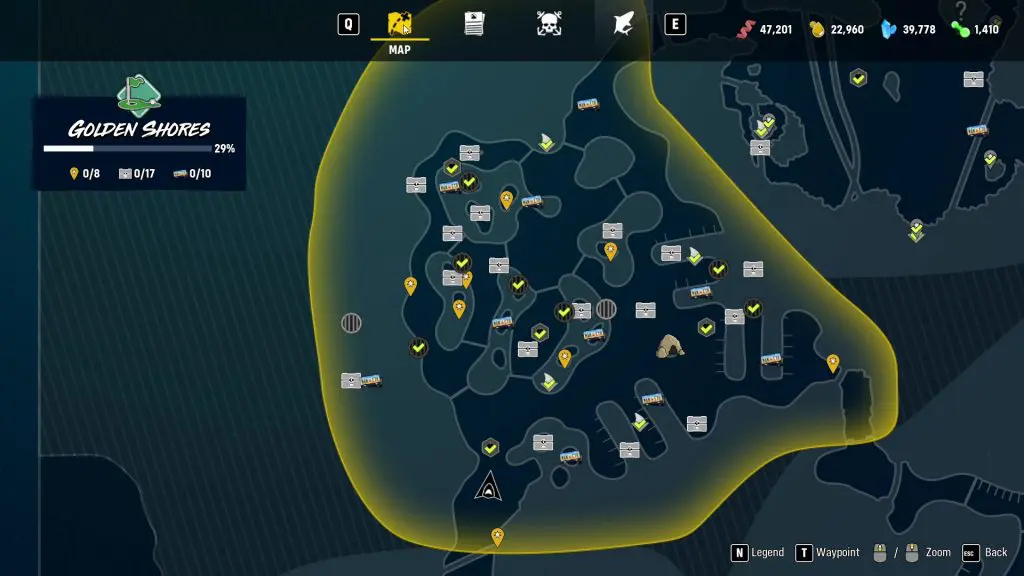 Maneater: Golden Shores All Collectible Locations | License Plates, Landmarks & Nutrient caches Post published:May 24, 2020 Post category:Maneater In Golden Shores Area there are following collectibles:10 License Plates8 landmarks17 Nutirent CachesCheck the Below Map For Location of all the items Check out the videos below to see how to get these collectibles. Golden Shores: All License Plate locations Golden Shores: All Landmark locations Golden Shores: All Cache locations