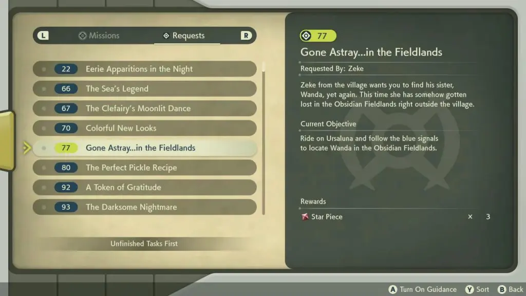 This guide shows the complete walkthrough of “Request 77: Gone Astray in the Fieldlands” in Pokemon Legends Arceus. For this request, you will need to find an NPC named Wanda in the Obsidian Fieldlands.
