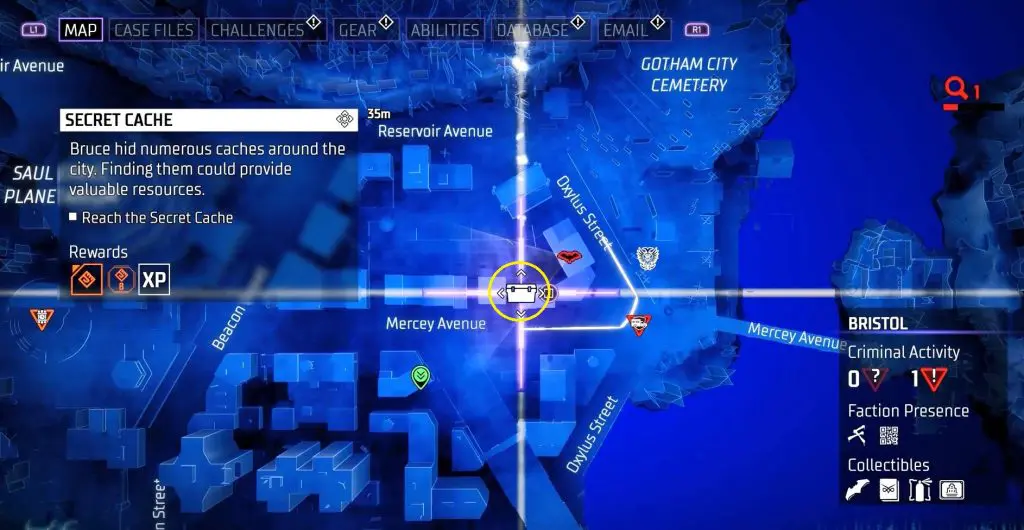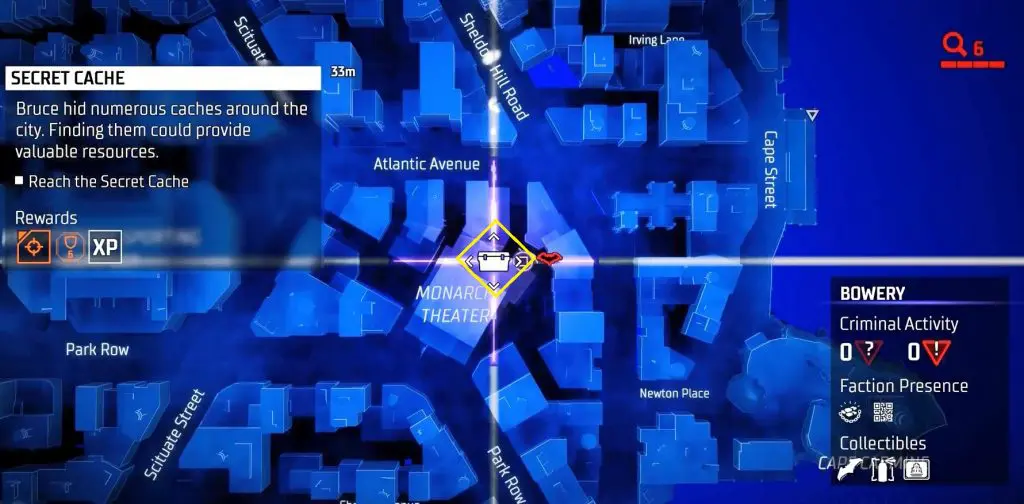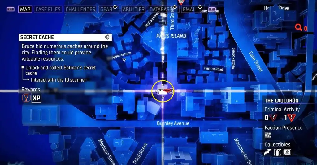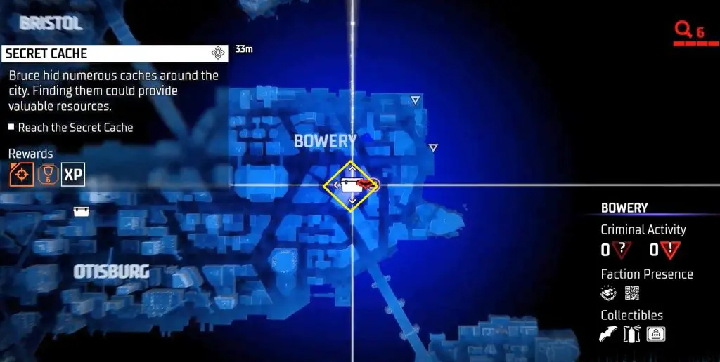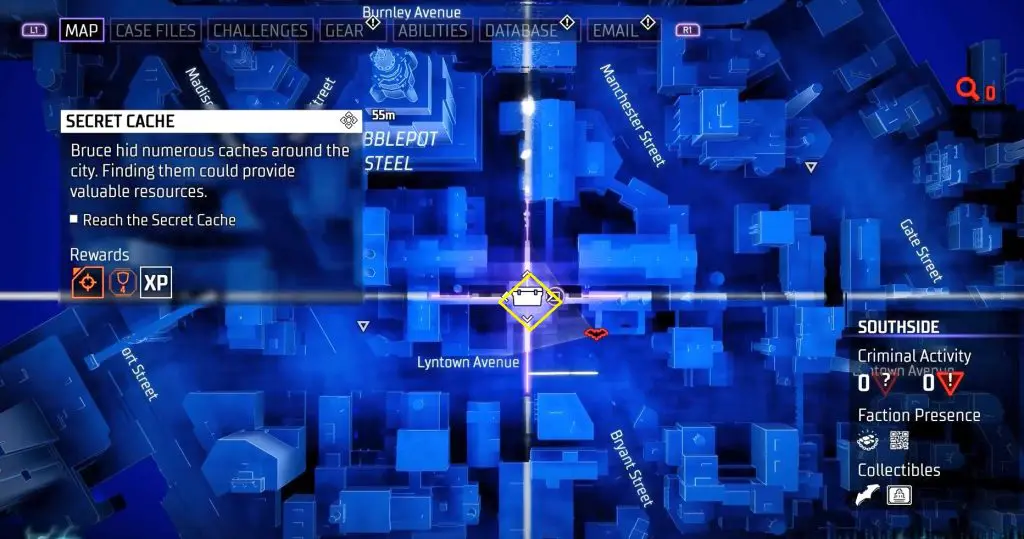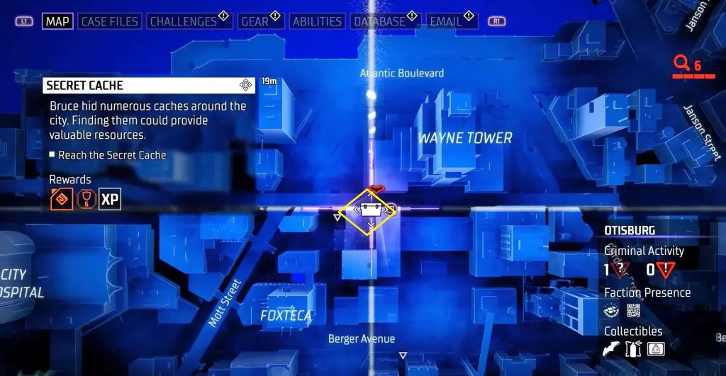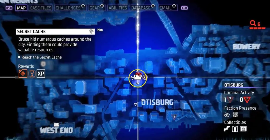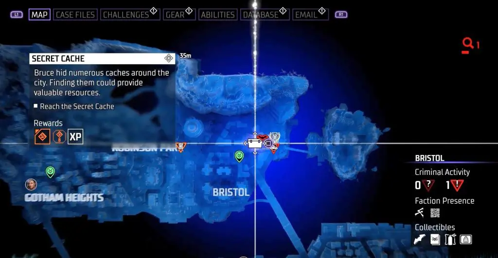 In-game, these collectibles are known as “Secret Caches,” however in the trophy list, they are known as “Bruce Wayne’s Hidden Audio Recordings.” They are marked on the map by white Box Icons and become available after completing Main Case 01: Batman’s Last Case. Return to The Belfry (Headquarters) after collecting all of the available ‘Secret Caches’ to generate more.