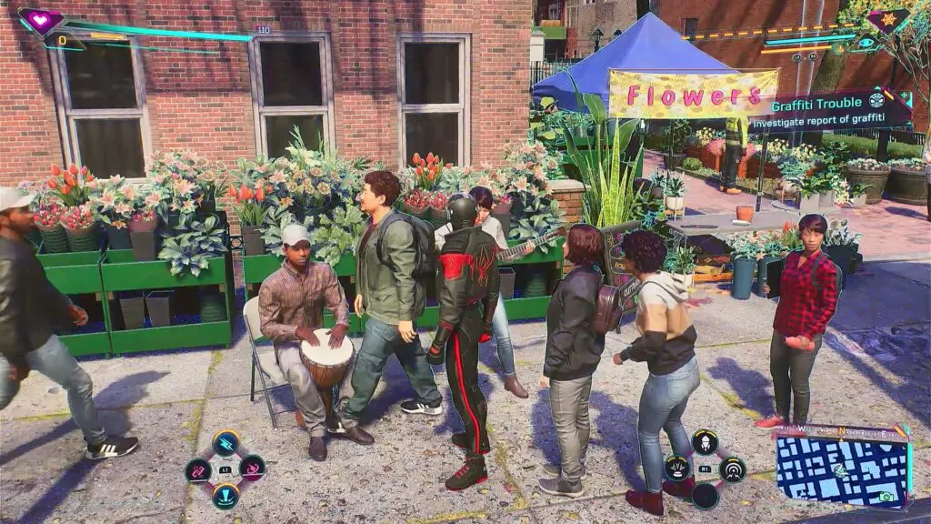 This request will be unlocked after you have completed Main Quest 14: Funky. Go to the flower shop at the location shown in the pictures below as Miles Morales and talk to the man inside. Then you will play as Hailey.