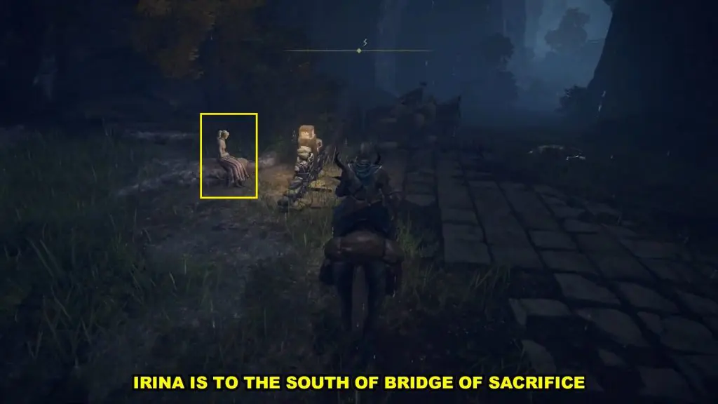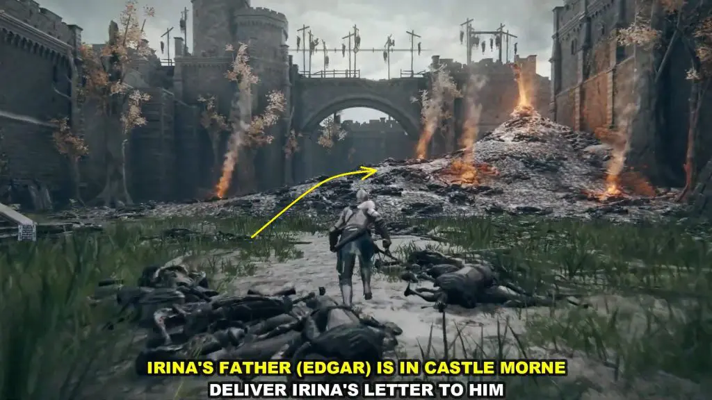 Go back to Irina’s Location south of the Bridge of Sacrifice. Here you will see that Irina is dead and Edgar will be weeping near her corpse.
