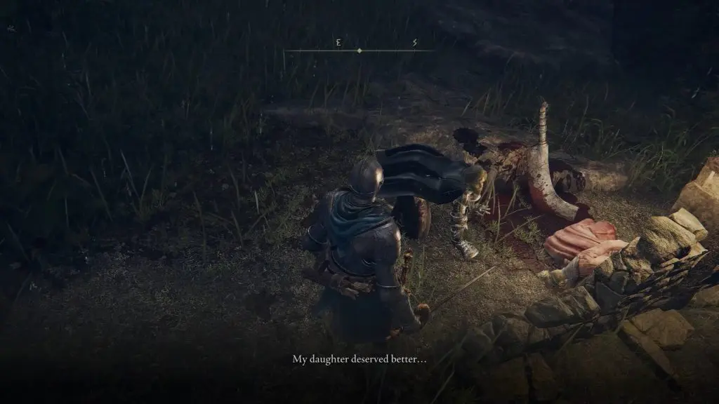 Rest on the Site of Grace at the Revenger’s Shack. Shortly, you will be attacked here by Edgar the Revenger. Defeat him to complete the questline. He will drop Banished Knight’s Halberd.