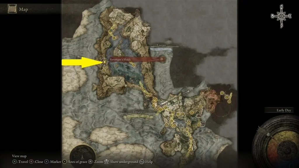 Go to Revenger’s Shack in Liurnia at the location shown in the pictures below.