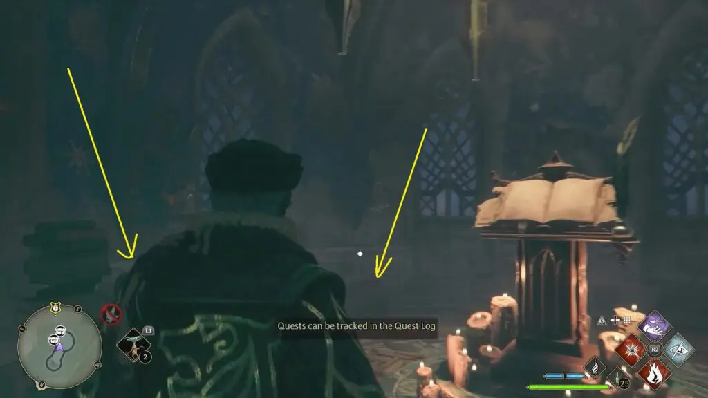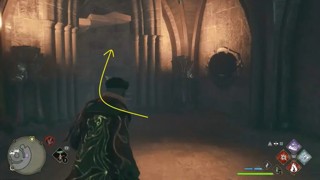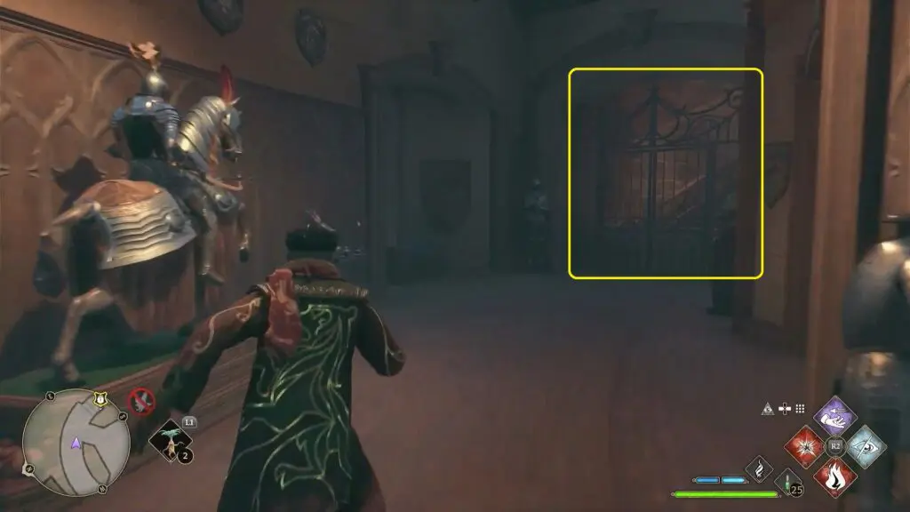 Go down the stairs from the Floo flames. The collection chest may be found inside the first locked Arithmancy Doors on the left. Using the Door Guide, enter (6) and (7) for the ? and ?? blocks to unlock the door.