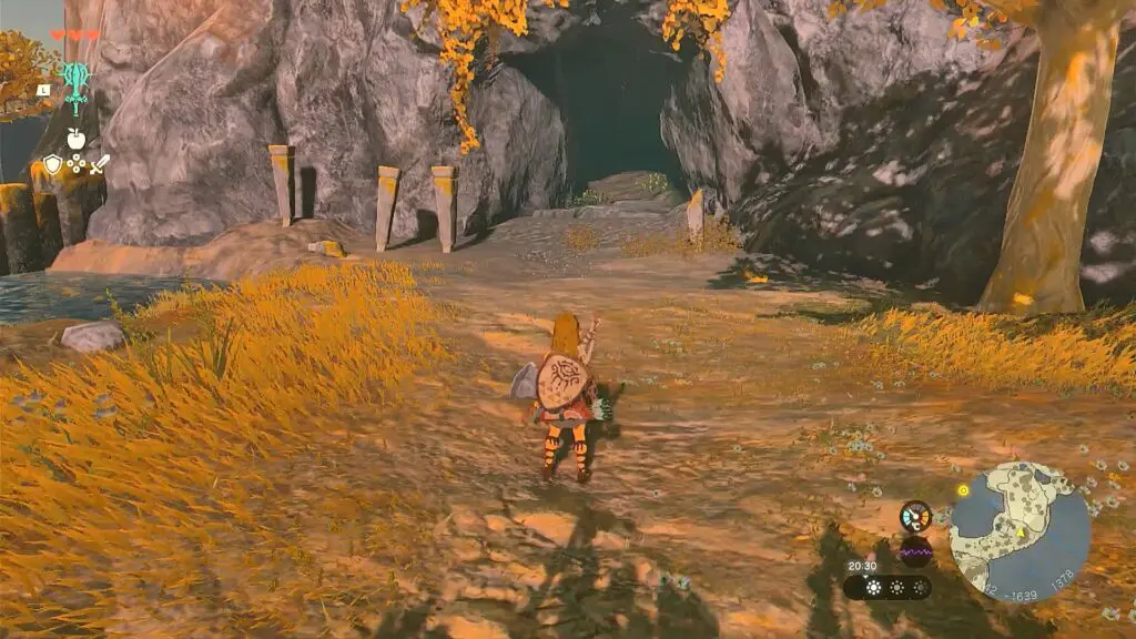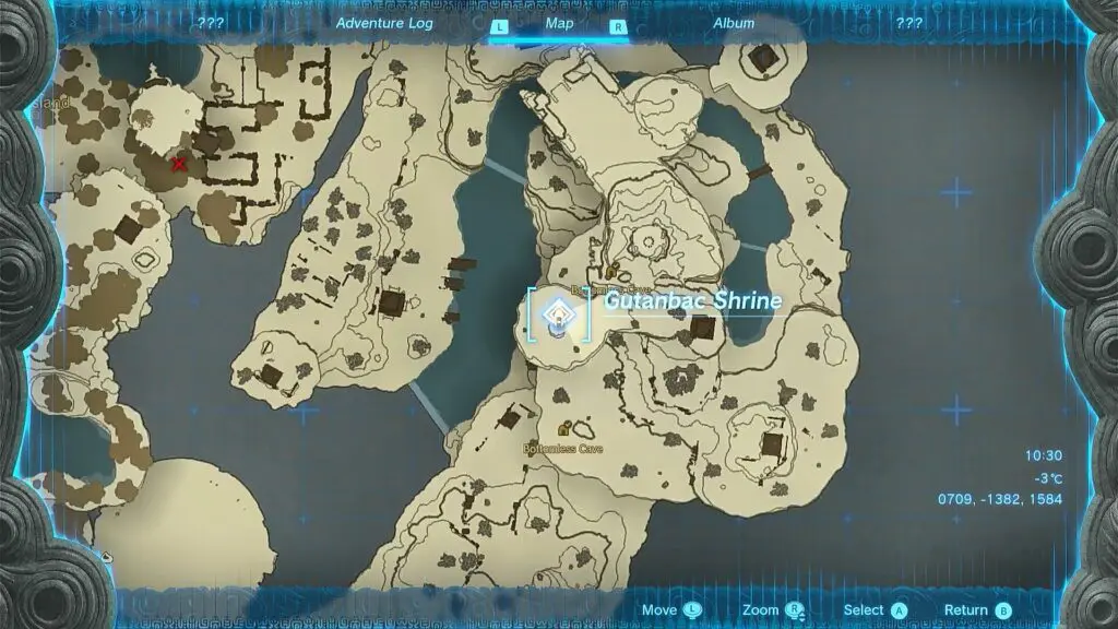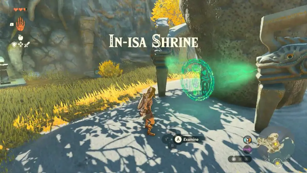 Proceed ahead and you will find the Gutanbac Shrine on the right side as shown in the pictures below. Interact with the giant stone at the marked location to enter the shrine.