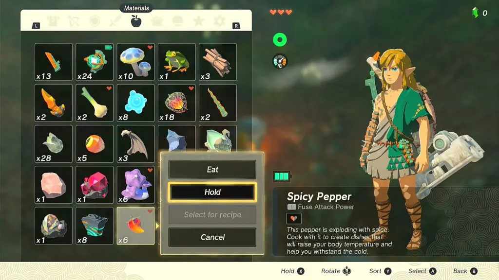 Before entering the cave, pick up Spicy Pepper at the entrance. Enter the cave and then hold the Spicy Pepper in your hand. Then go near the fire and cook Spicy Sauteed Peppers as shown in the pictures below.
