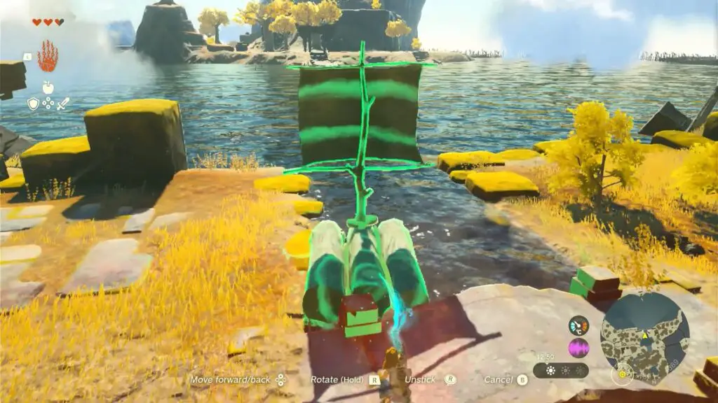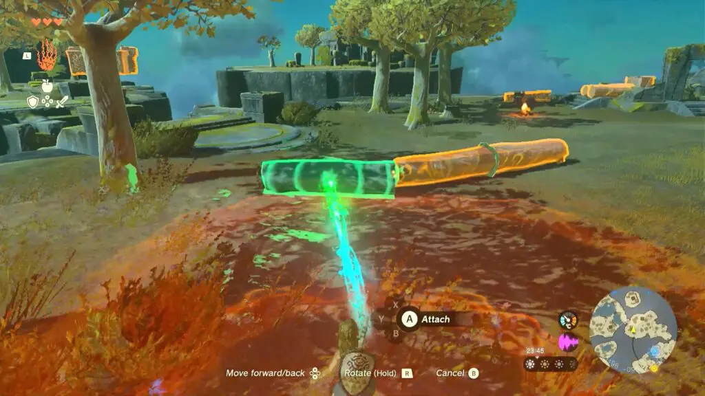 - Activate the Ultrahand ability by using the L button, and then drag the item to move it.