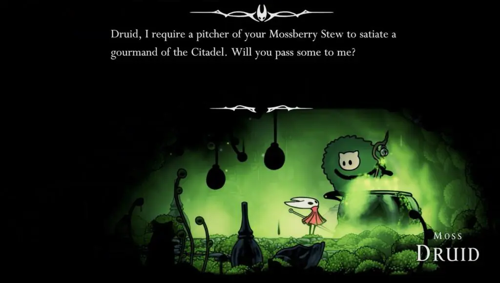 Next, make your way to Bone Bottom. Here, you’ll meet the Moss Druid, who can prepare a Mossberry Stew for you. Speak with him, and he will give you Mossberry Stew.