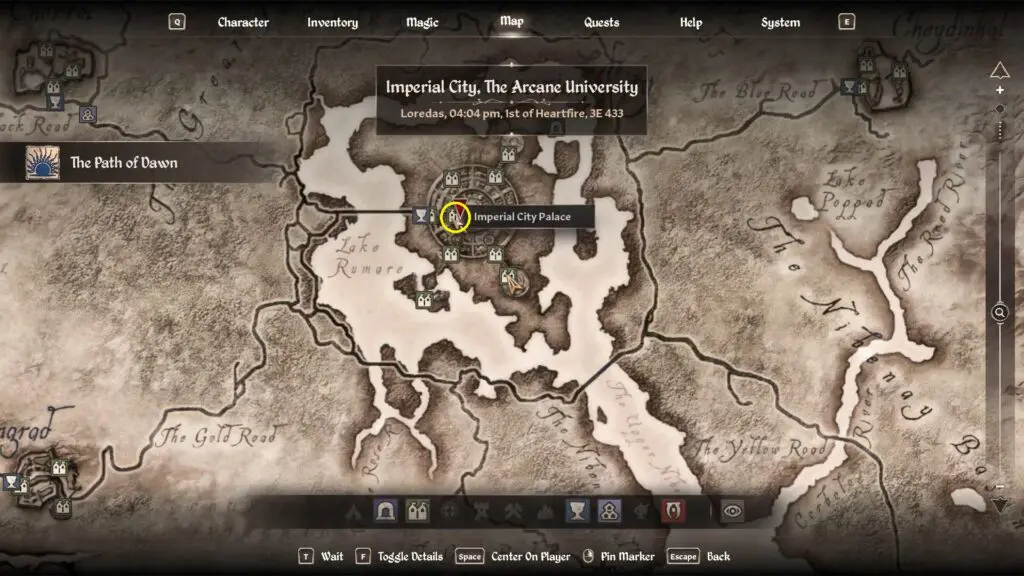 To solve the puzzle, head to the Imperial City Palace and make your way to the Tomb of Prince Camarril. This Tomb is located southwest of the White Gold Tower. Refer to the location below on the map.