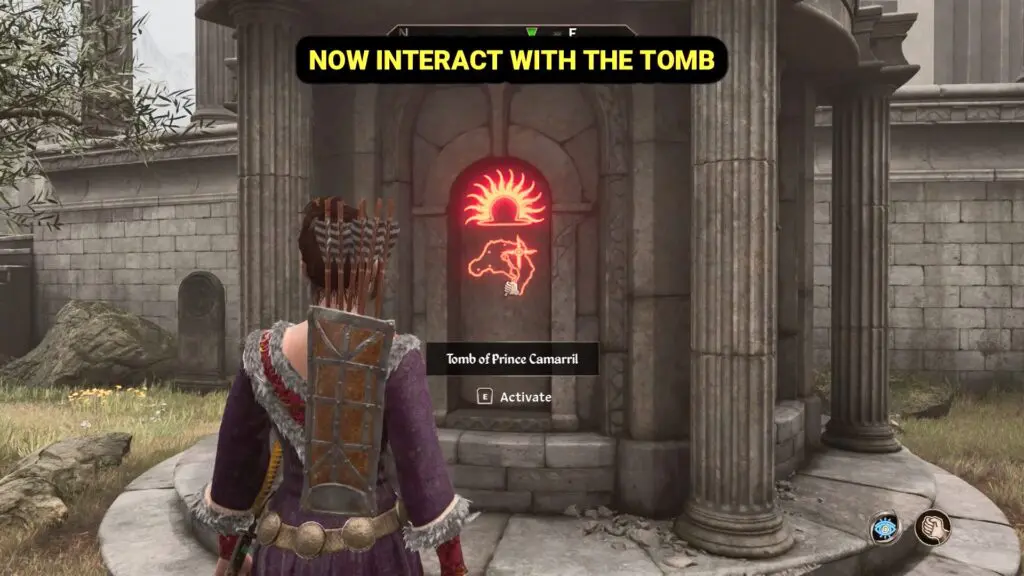 Once you reach the tomb area near the tower’s base, wait till noon (midday).