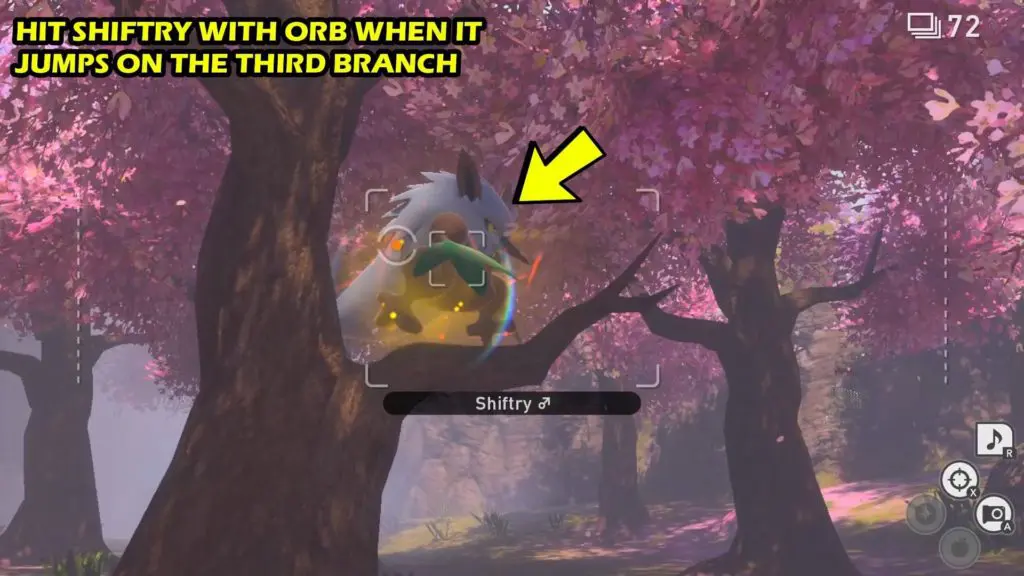 - Reach spring forest by not interacting with anything in the first area. As soon as you enter the spring forest start looking for Shiftry on the right. Shiftry is sleeping atop one of the trees on the right side.