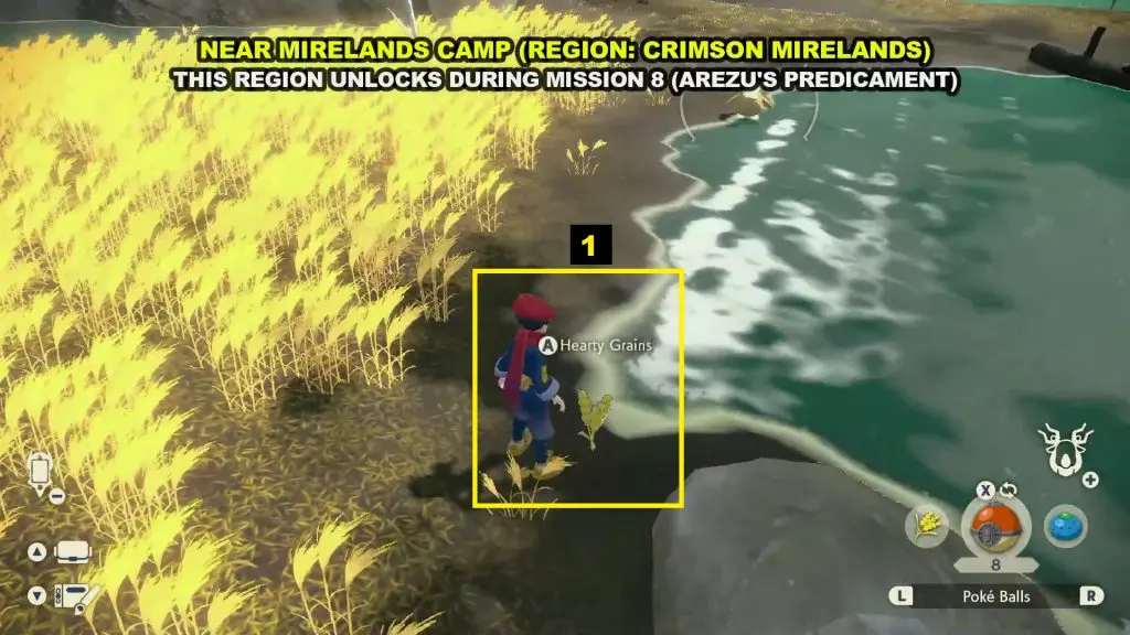 You will find Hearty Grains near Mirelands Camp. This region will be unlocked during mission 8. The location of Mirelands Camp is shown in the pictures below.