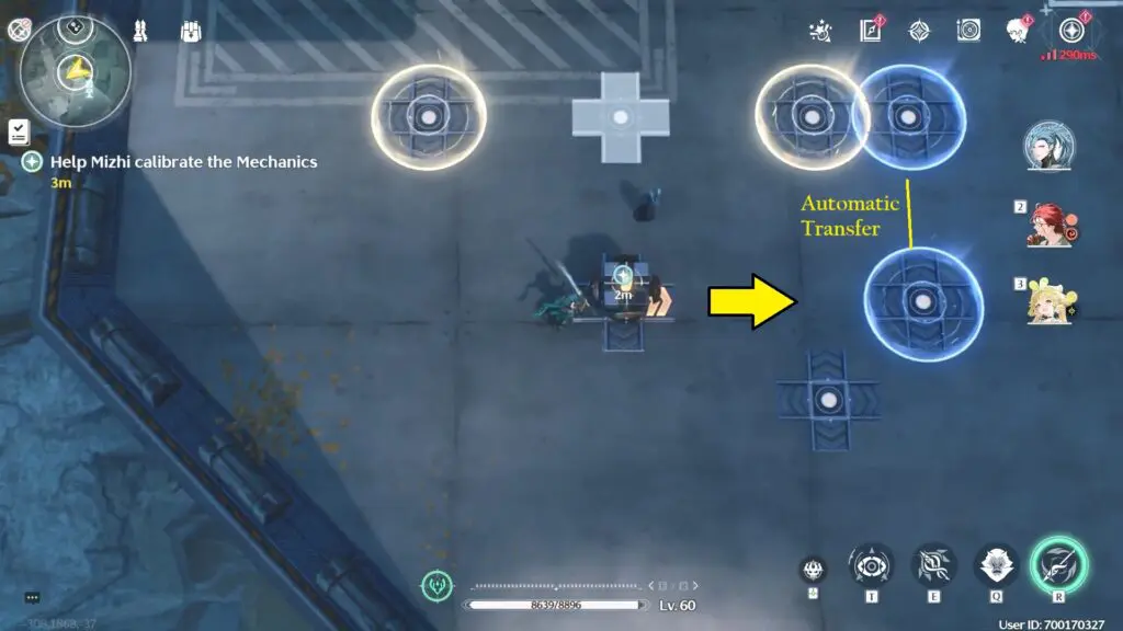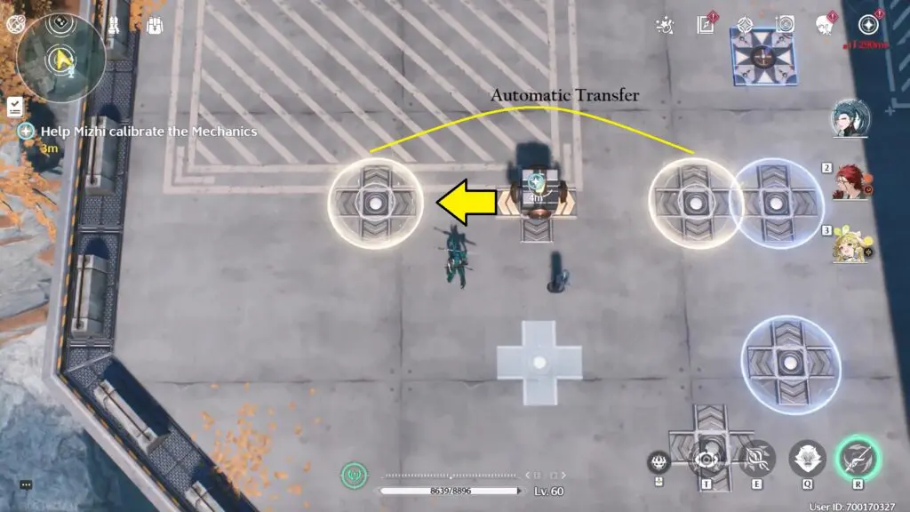 Mizhi will explain that the new mechanisms have two different color halos on their bases. Whenever the cube moves to a base with a specific color halo, it should automatically transfer to the next base with the same color halo.