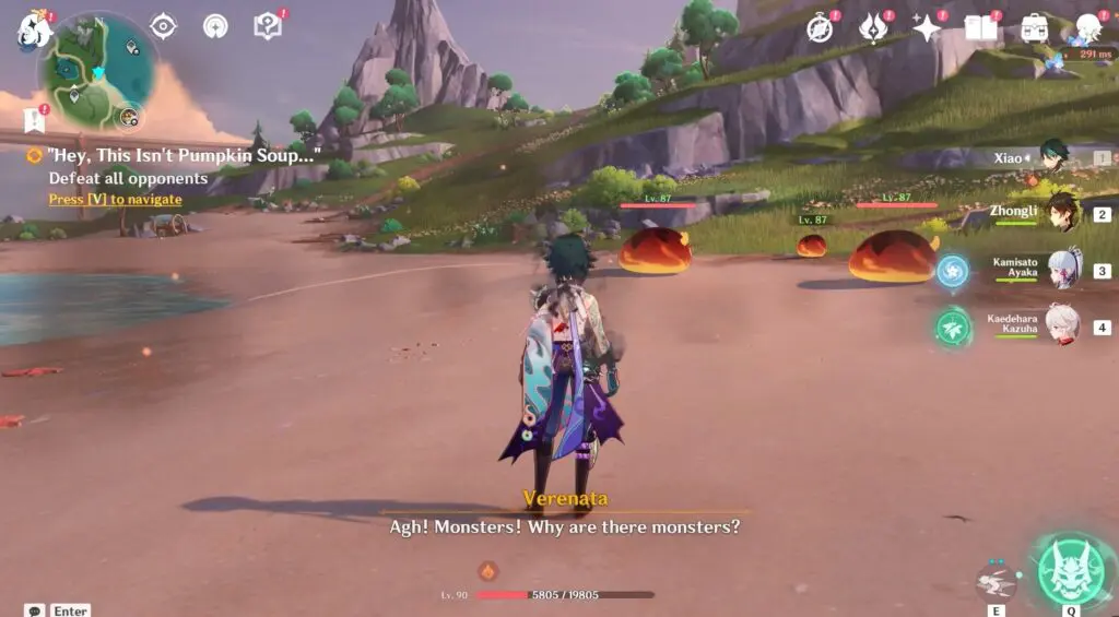 The next battle will be between three waves of Pyro Slimes. There will be large Pyro Slimes and normal Pyro Slimes. After three waves of fighting these enemies talk to Verenata