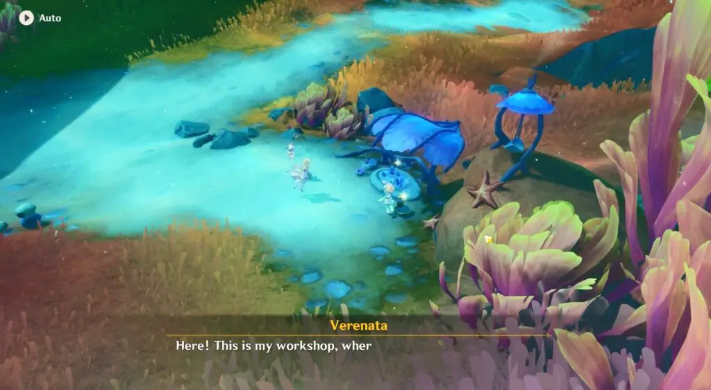 After you’ve finished the battles, you’ll be requested to use the Truesight Potion and go to a nearby river to find a blue umbrella with a vase. Swim underwater in the nearby river looking for a light blue umbrella with a vase. Head over to it and talk to Verenata again to complete the quest!