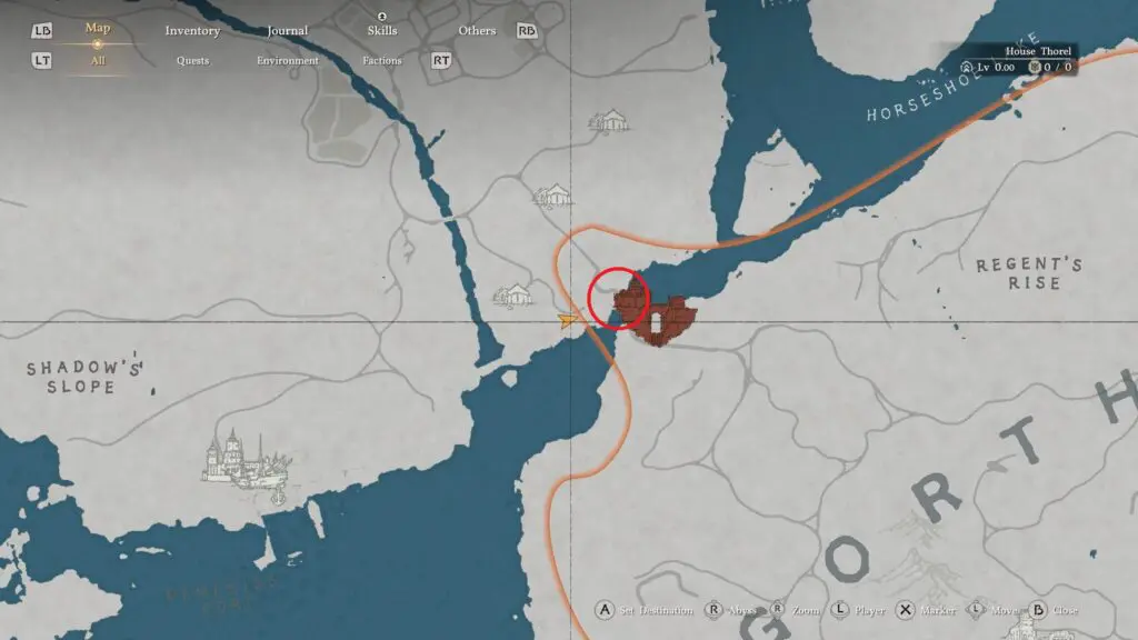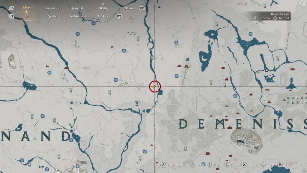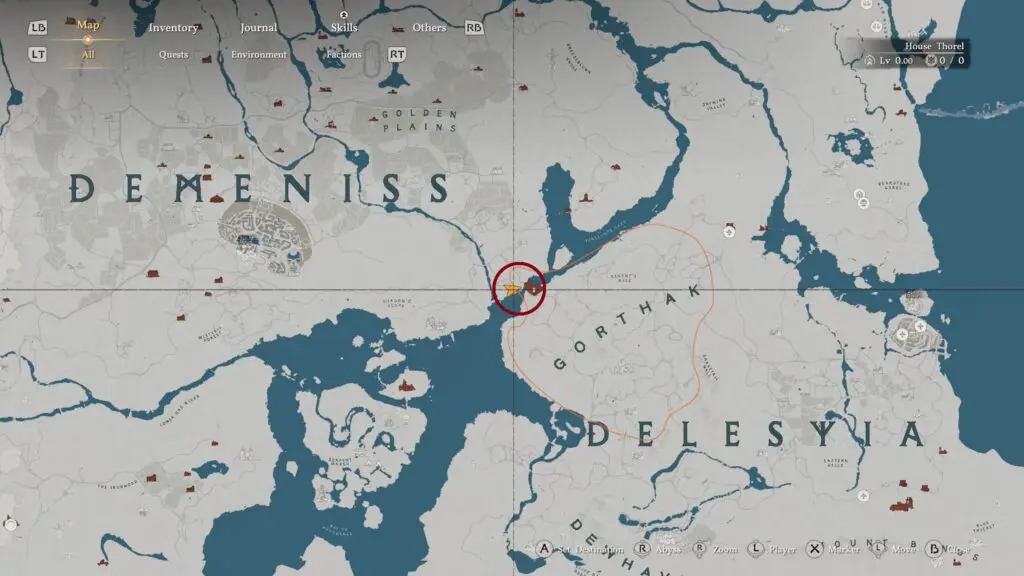 The treasure can be found inside a building on the bridge that connects Gorthak and Demeniss. Head to the Demeniss side of the stone bridge and look for a door at the base of the structure. Enter through this door.
