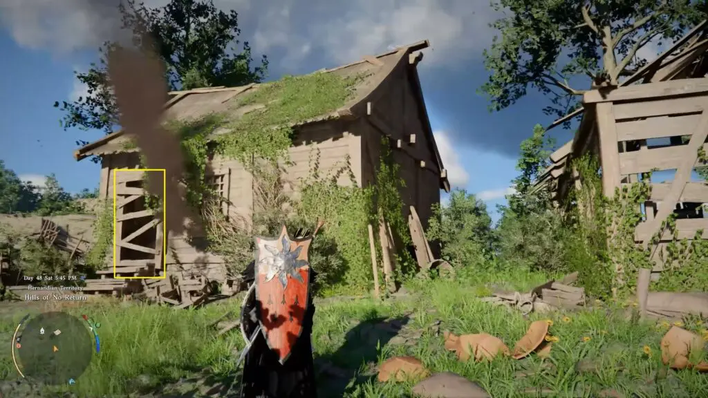 Treasure Map Piece 3 can be found inside a small wooden hut located east of the Hills of No Return. Start by heading east from the Hills of No Return and follow the path toward the river. Before you actually reach the riverbank, keep an eye out for two wooden huts.