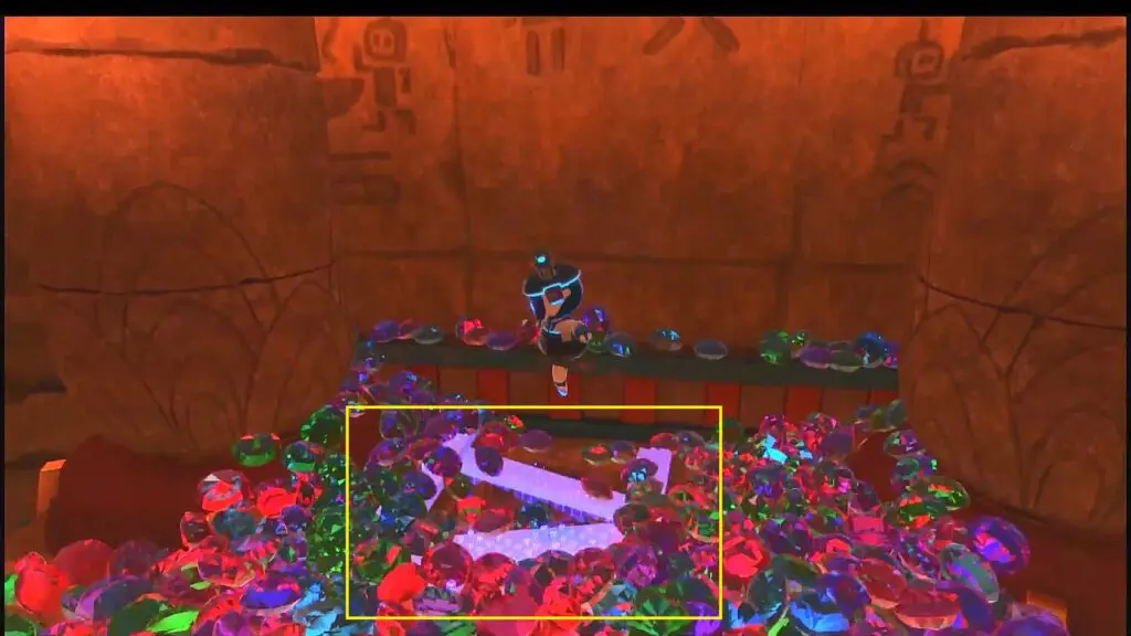 Proceed until you reach the exit flag. Instead of using the exit flag, go to the platform on the right side as shown in the picture below. Remove the balls there and you will see some wooden planks on the ground as shown in the second picture below. Jump and smash the ground and you will be thrown to the platform up ahead. There you will see a “Find The Spot” puzzle. Solve the puzzle to get entry to the hall with the globe as shown in the third picture below. You will need to solve a couple of more “Find The Spot” puzzles to reach the globe. Pull down the wire hanging out from the globe to unlock the secret level exit.