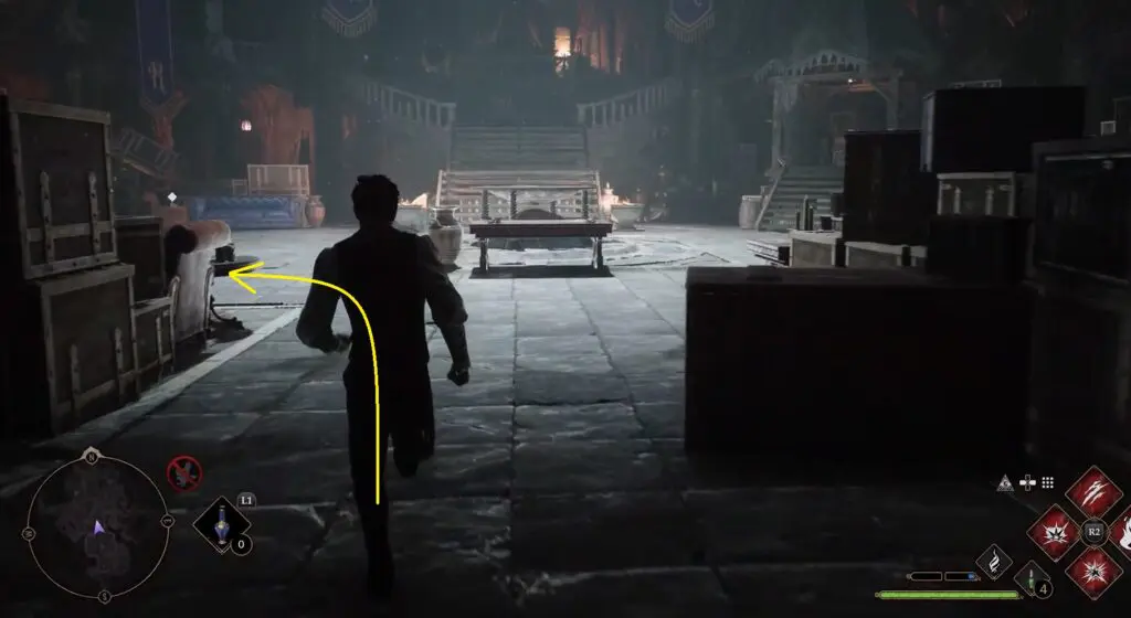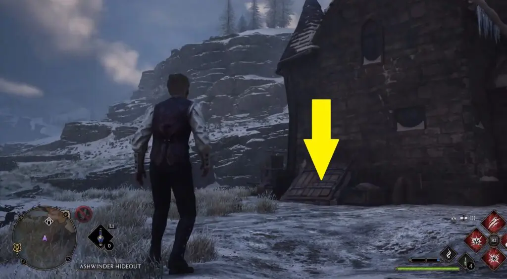 You will be able to get this collection chest only after completing A basis for Blackmail relationship quest. Enter Ashwinder Hideout as shown in the pictures below. Then proceed ahead until you reach a hall with a big staircase. The collection chest is on the left side of this hall as shown in third and fourth pictures below.