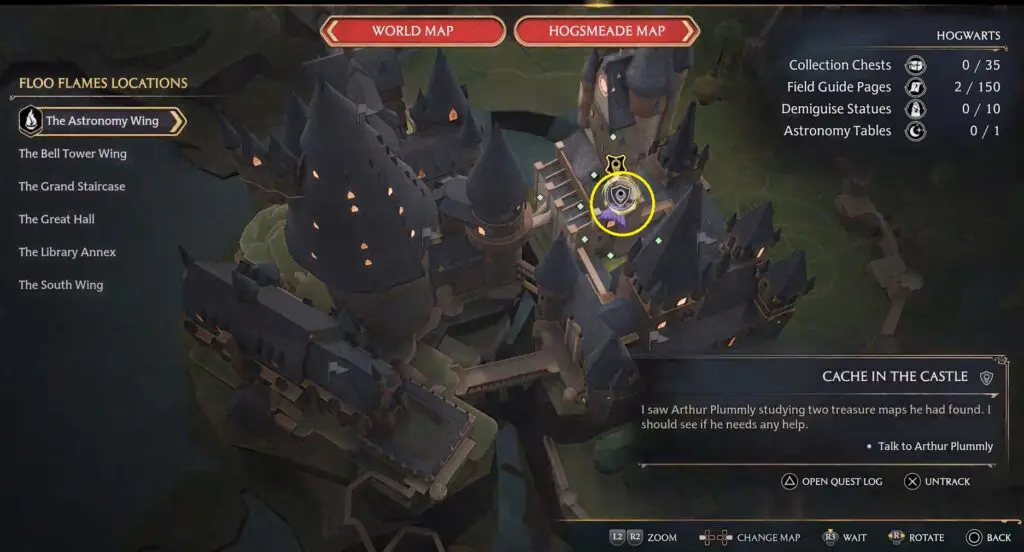 This walkthrough will guide you through all objectives of the side quest Cache in the Castle in the game Hogwarts Legacy.