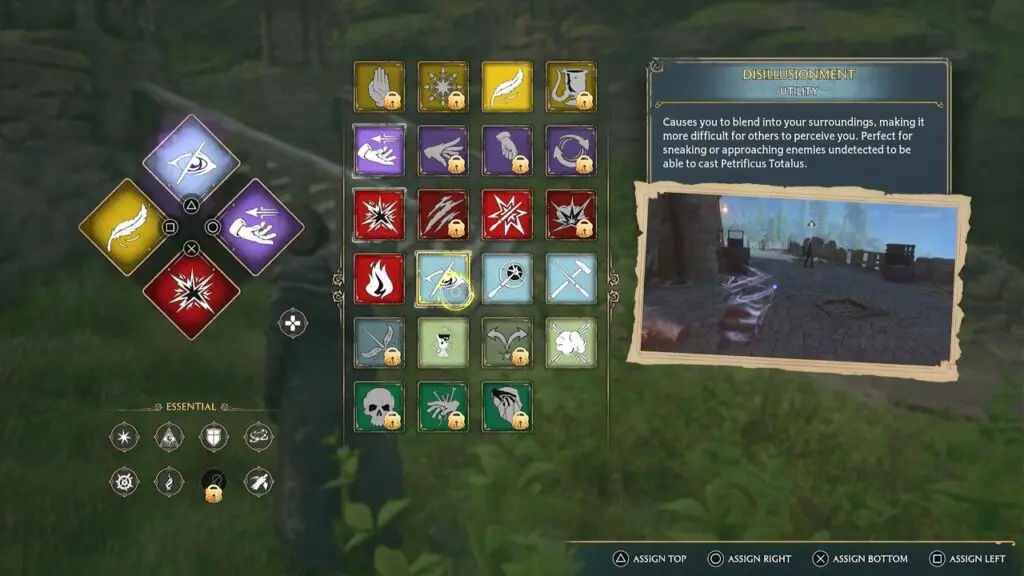 Now start following Professor Fig towards the ruins. He will suggest using Disillusionment charms to stay invisible from the enemies. This mission also grants access to Petrificus Totalus (Petrification Charm). After using Disillusionment to blend in, you can sneak up on an enemy undetected and use Petrificus Totalus to incapacitate a weaker enemy or severely damage a stronger one.