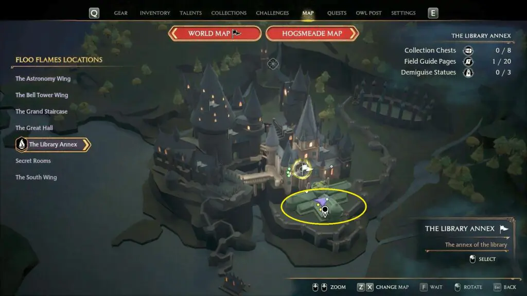 Next, head to the Magic Neep shop on the west side of Hogsmeade. Buy the Fluxweed Seed for 350 Galleons coins. Refer to the below image for the location.