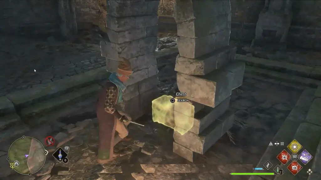 Use Revelio spell. Pass through the archway to reveal the chest.