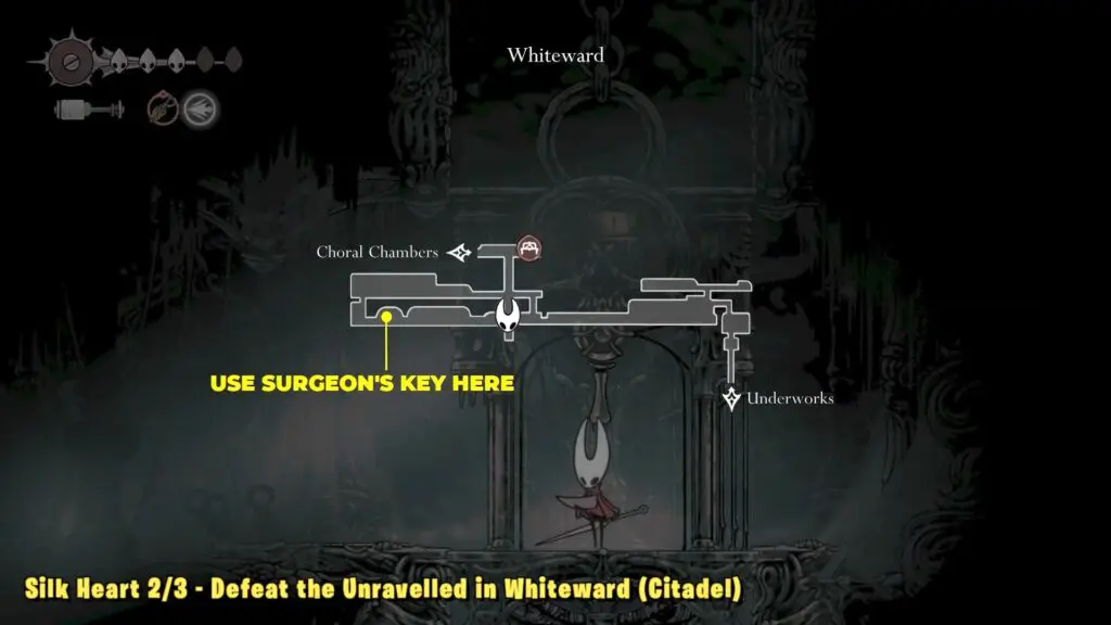 The second Silk Heart is found in Act Two within the Citadel’s Whiteward area. To reach it, use a White Key from the Coral Chambers to unlock a lift, then find a Surgeon’s Key to open the crypt.