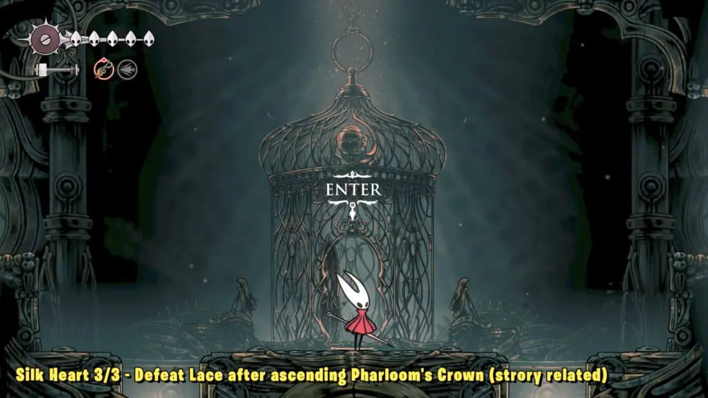 Inside, you’ll face a boss fight with Lace. Defeat her to claim the last Silk Heart.